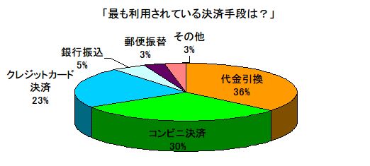 本紙調査で「最も利用されている決済手段」は、09年夏に実施した前回調査から2ポイント増の「代金引換」が最も多く、全体の36%を占めた。