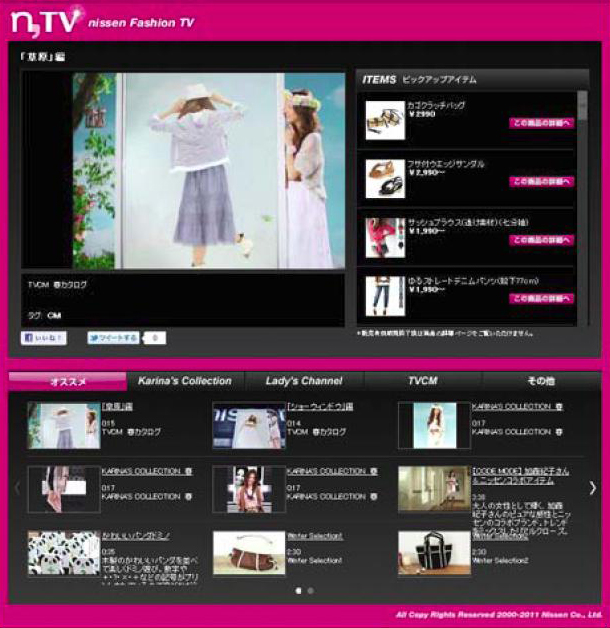 ニッセンでは「ユーストリーム」を使ったネット販売での動画活用のテストなどを行っているが、今回の「Nissen Fashion TV」では、ブライトスコーブの動画配信プラットフォーム「Brightcove」を採用。ユーザーインターフェィスの自由度が高くPCやスマートフォンへの展開・運用がしやすいことを踏まえたもので、Jストリームが同プラットフォームの活用に関するプロデュース・配信を担当する。