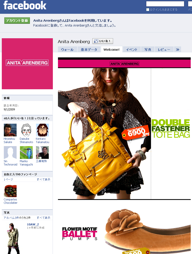 このため、同社が取り組もうとしているのが「フェイスブック」の活用。既に他の通販事業者でも注目しているが、セシールでは、「キーワード広告の場合、対象がセグメントされてしまうが、『フェイスブック』は自分達が買って欲しい層にアプローチができる」(同)とし、すでに「アニタ」のファンページも開設しているという。特に告知を行っていないこともあり、ファンページ登録者は数十人規模という状況だが、まずは商品など「アニタ」に関する情報提供を行い閲覧者の反応を見ていく考え。