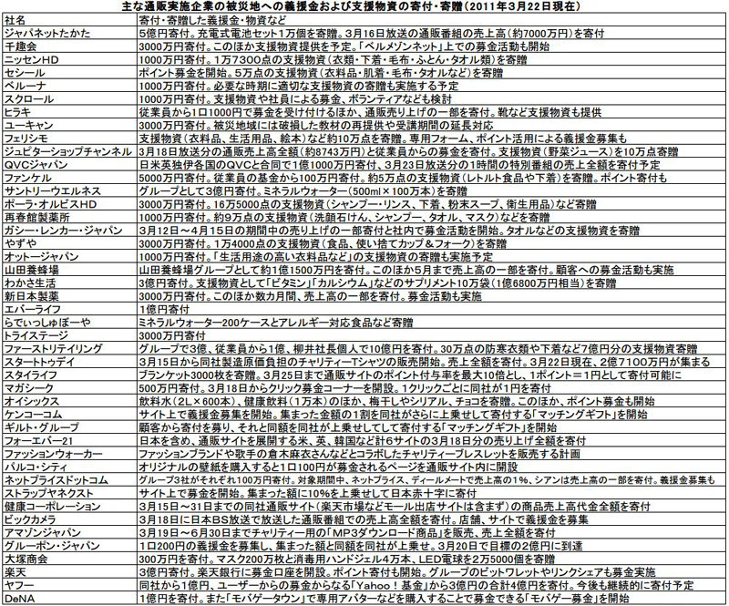 支援の輪、通販各社で広がる――未曽有の災害から半月