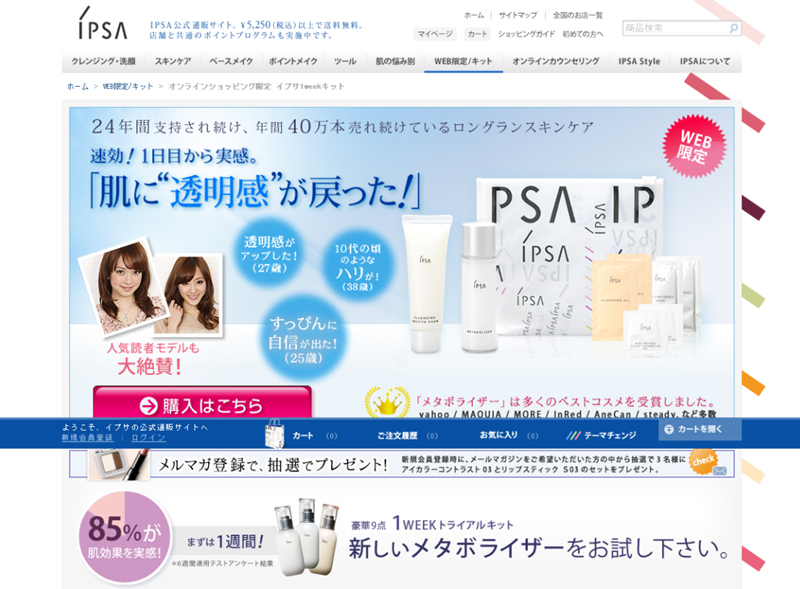 イプサでは2006年以降、新規客向けにウェブ限定キット「1ウィークキット」(税込1365円)を展開しているが、それ以外は店舗と同じ内容のキットや、新商品発表に合わせたキットを期間限定で展開するに留まっていた。