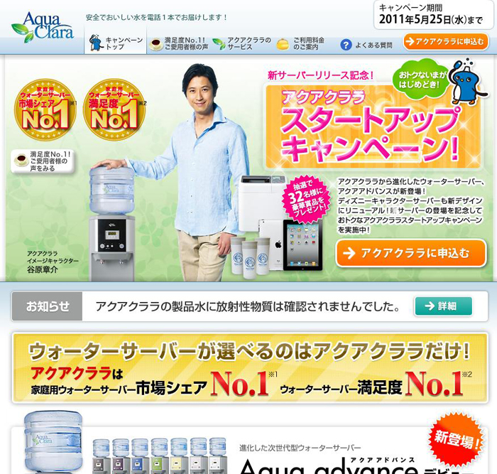 福島第1原発の放射能漏れ事故の影響で東日本の各地で水道水から放射性物質が見つかり、東京都でも乳児の摂取基準を上回る濃度の放射性物質が検出された。発表を受けペットボトル入り飲料水の需要が一気に高まり、一時的にスーパーやコンビニエンスストアの棚が空になる事態となった。現在、パニックとも呼べる状態は緩和されつつあるものの、"安全な水"に対するニーズは急速に高まっているようだ。