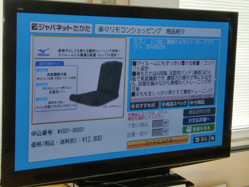 テレビでのネット販売の可能性は。 「リモコンでショッピングをするという新しい試みに非常に手ごたえを感じている。テレビでのネット販売の場合、リモコンで操作するというのが難点だ。特に住所などの入力が一番ネックだ。リモコンではやはり無理だ。今回はそれは必要ないため、可能性を感じる。また、リモコンは基本、上下左右という操作性しかないため、これを前提とした画面作りにせざるを得ないが、結果的にそれが分かりやすい導線を生み操作性も向上した。今回は非常に操作しやすいユーザーインターフェイスが作れたと思う」
